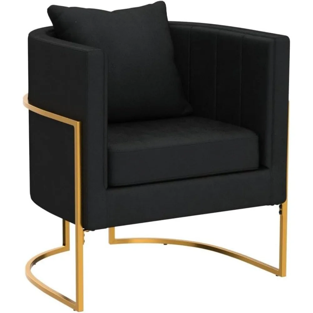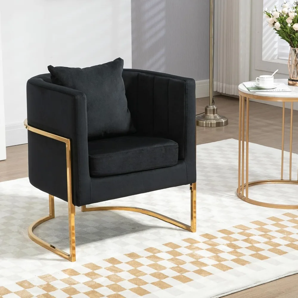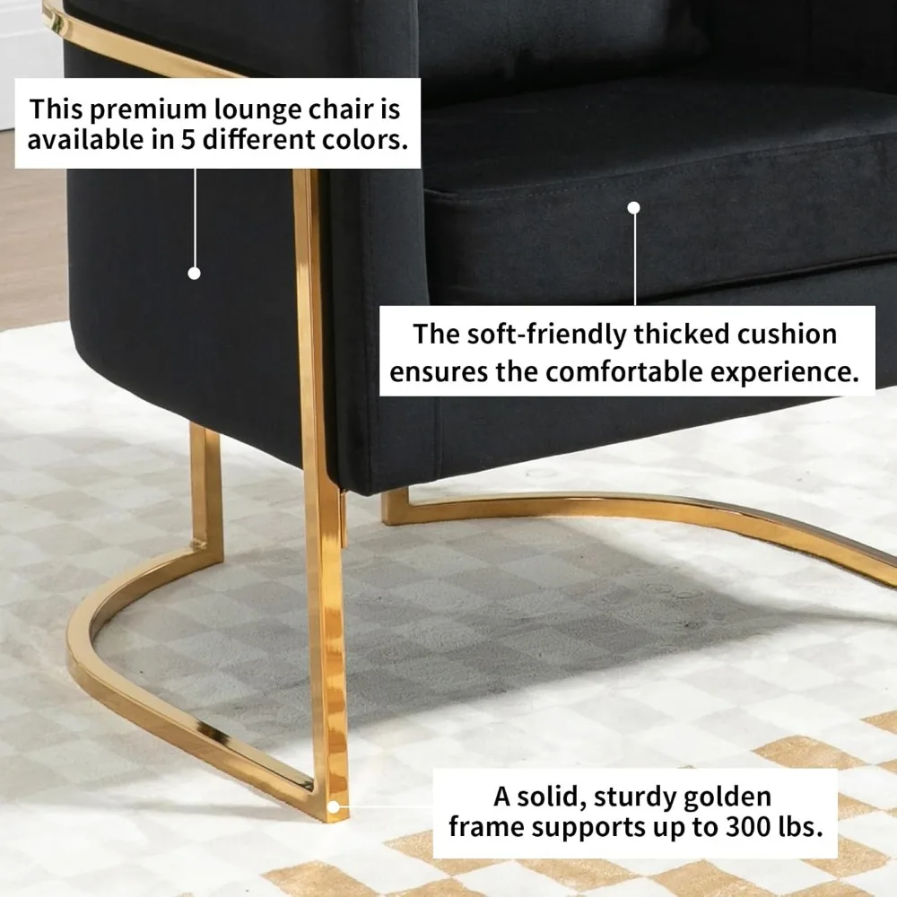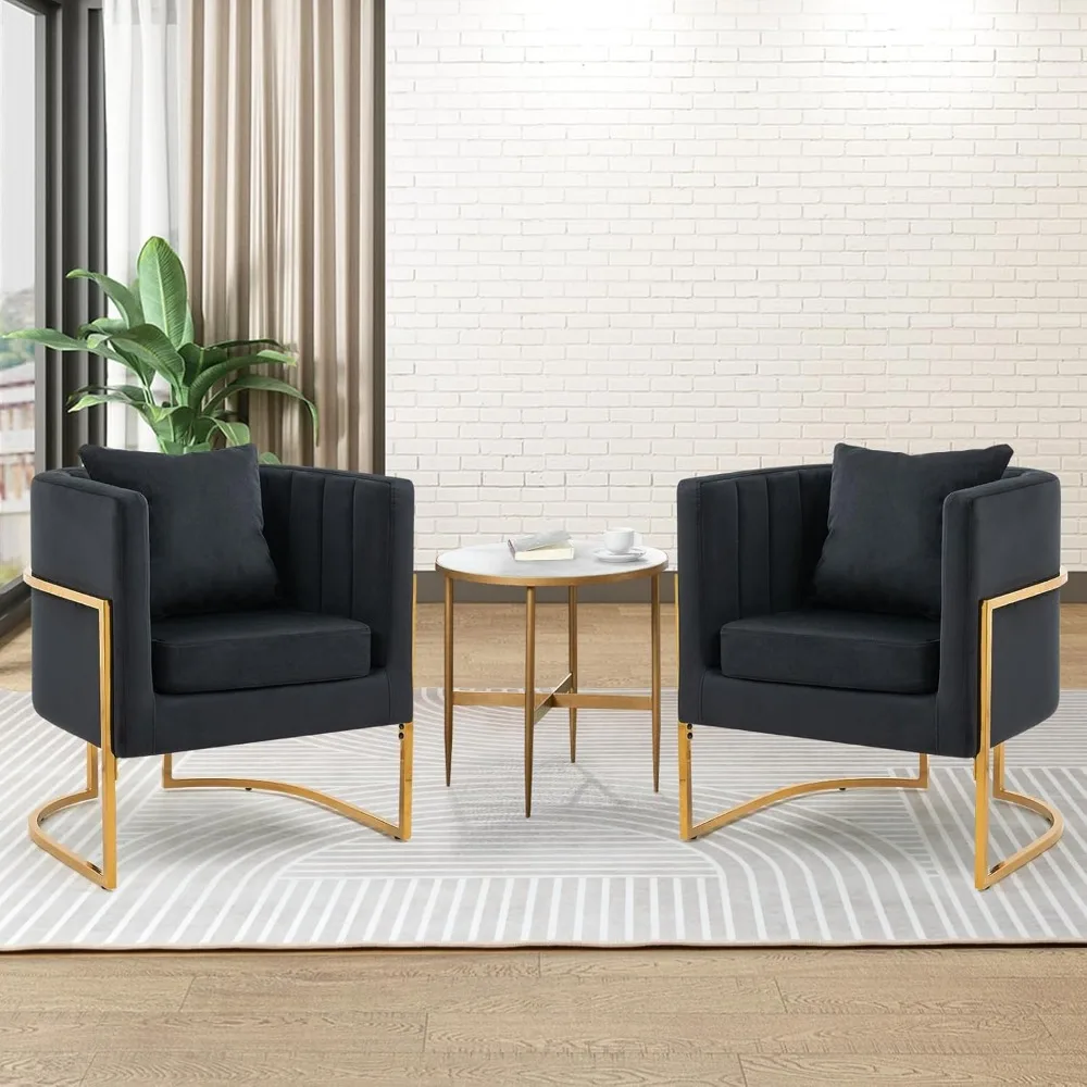 Modern Accent Chair Set of 2, Mid Century Comfy Single Vanity Chair with Metal Gold Legs for Bedroom, Black,Living Room Chairs