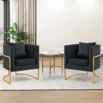 Be the first to review “Modern Accent Chair Set of 2, Mid Century Comfy Single Vanity Chair with Metal Gold Legs for Bedroom, Black,Living Room Chairs”